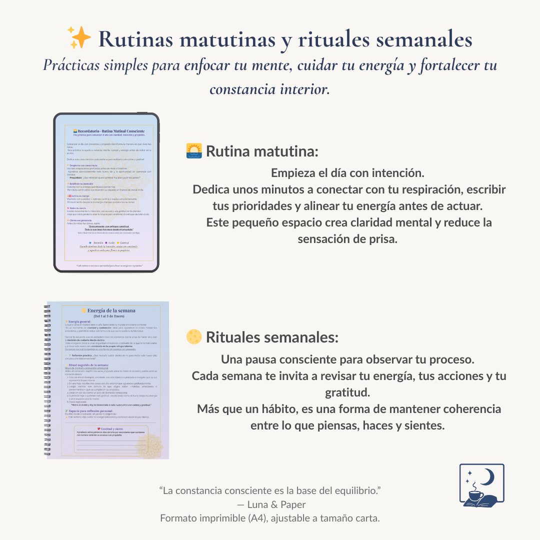 Este planner te ayuda a observar tus patrones, priorizar lo esencial y mantenerte constante sin presión.
